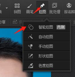 步骤二:选择菜单栏中的抠图——智能抠图(如下图)