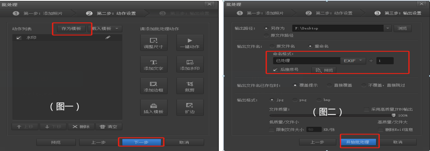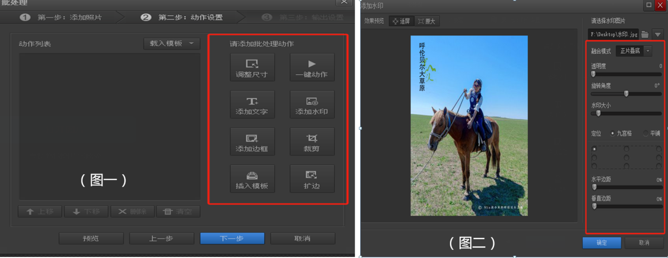 第二步:添加需要处理的动作,如:水印、文字等,编辑所需的位置、大小、融合模式等