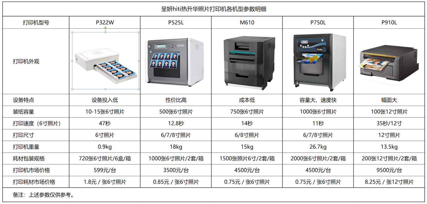 在全球热升华数码影像输出产品市场中包括呈妍hiti、柯达Kodak、富士Fuji、DNP、西铁城CITIZEN、神钢SHINLO、佳能Canon、小米Xiaomi等众多国际品牌,其中呈妍hiti是唯一的同时具备热升华照片打印机和打印耗材自主研发和生产的国产品牌,因此呈妍hiti产品极具以下市场优势: