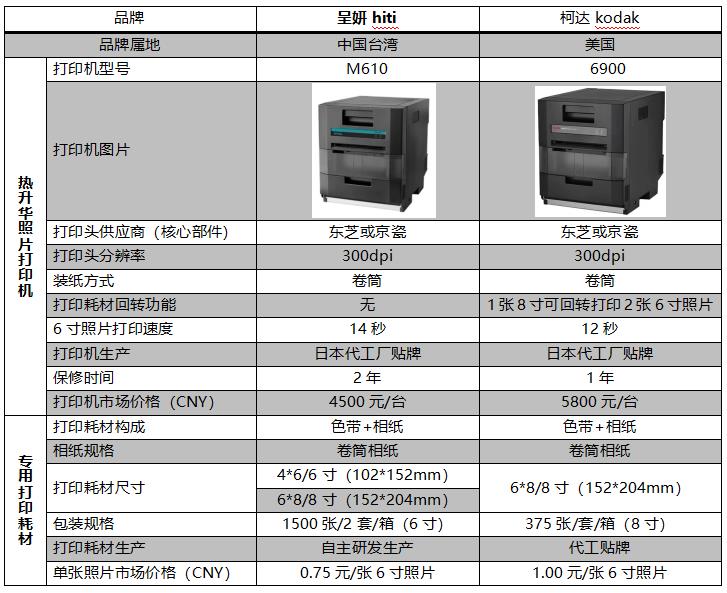 为丰富打印机产品线,呈妍hiti委托日本代工厂生产M610热升华照片打印机,时有客户咨询呈妍hiti M610和柯达Kodak 6900热升华照片打印机外形相似的原因,以及两者不同之处,在此汇总了这两款机型的各项技术参数仅供大家参考。